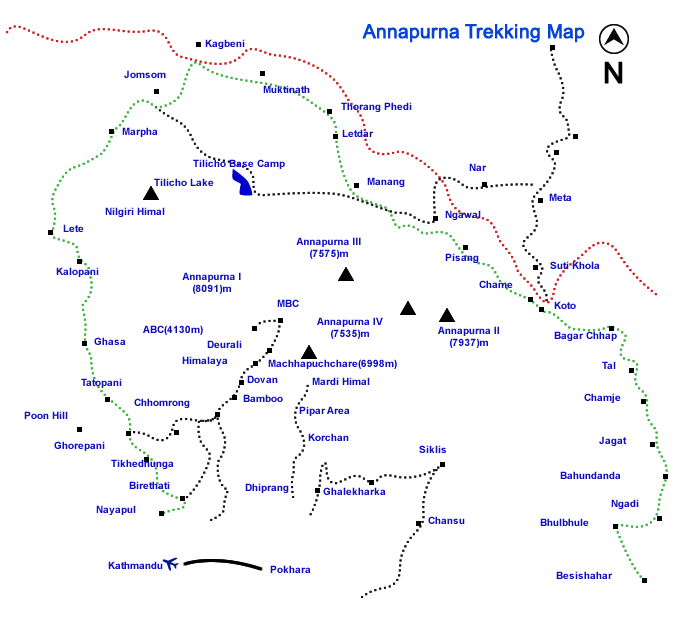 Start & End of treks: Pokhara to Jomsom